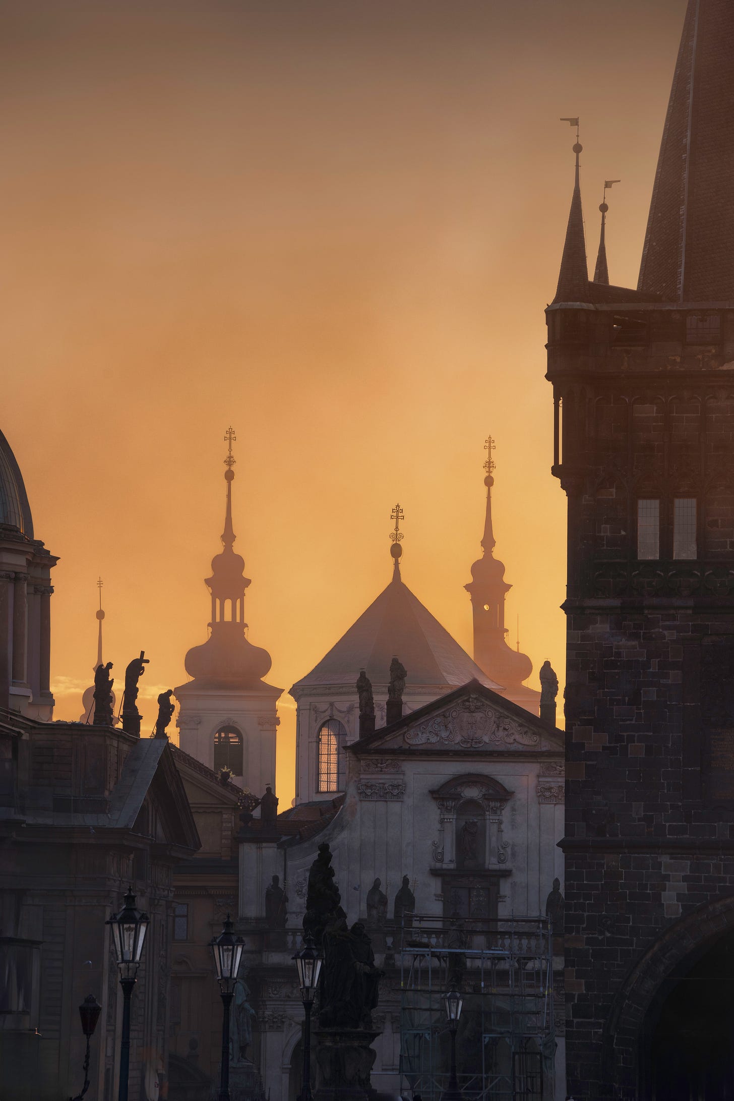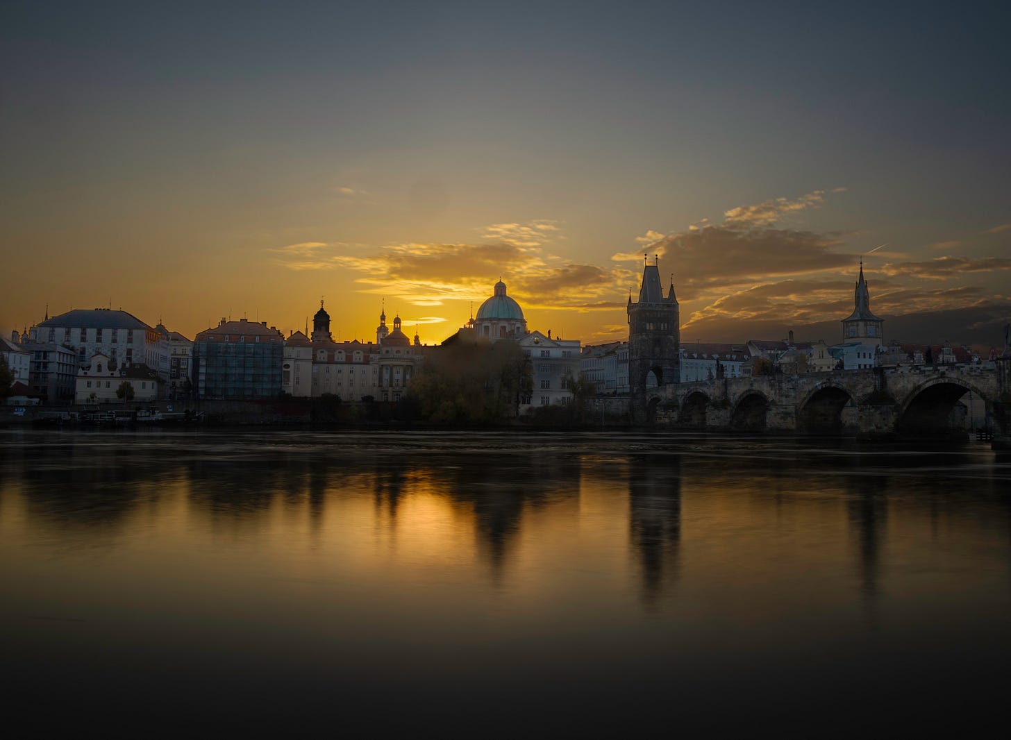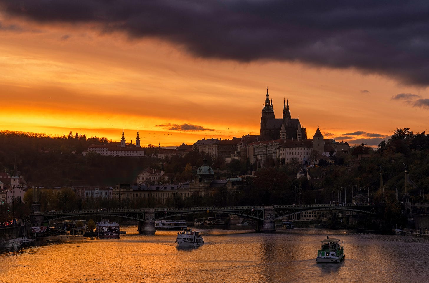 The Vltava River runs through the middle of Prague. On the north side, on a steep hill, is Prague Castle and St. Vitus Cathedral. On the south side is the Old Town and the town square. There are numerous bridges across the river. I think I captured six of them in one image from high on the hill on the north side. The wide river, the hills on one side, and the flat expanse on the other, set up the scene for great sunrise and sunset images especially with the church spires and bridges.
